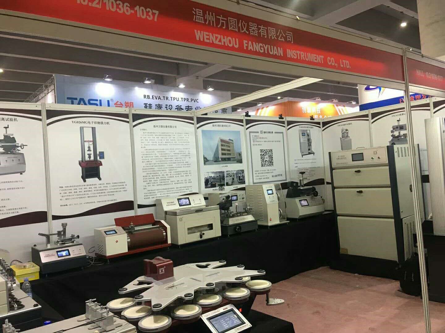 溫州方圓儀器有限公司應(yīng)展覽會主辦方邀請,參加此次展會,并實物展出了:FY600日曬氣候老化儀、YG028萬能材料試驗機、FXC651耐折試驗機、YG401FII織物平磨儀、XGMCIIA皮革摩擦色牢度儀、FXC621耐磨試驗機、FXC171剝離試驗機、FXC623鞋用纖維曲撓儀、FXC627鞋帶與鞋帶耐磨試驗機等16種鞋類、皮革檢測儀器。